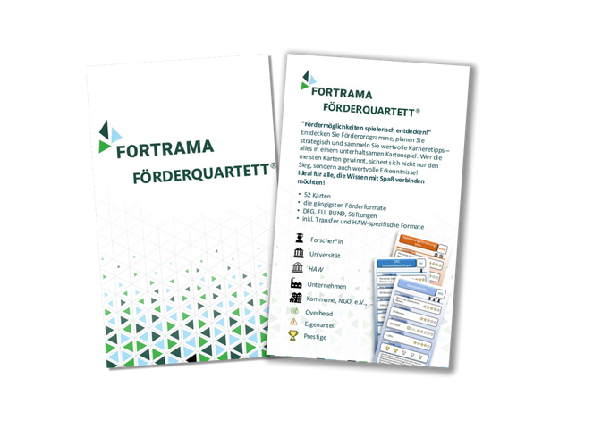 Die AG Förderquartett wurde aus dem Impuls heraus gegründet, innovative und spielebasierte Methoden für die Förderberatung in Forschungs- und Transfermanagement zu konzipieren und weiterzuentwickeln. Im Mittelpunkt steht das namensgebende Gamification-Tool „Förderquartett“, das Förderformate nach dem bekannten Quartett- bzw. Trumpf-Prinzip vergleichbar macht und so einen strukturierten Zugang zu komplexen Förderlandschaften ermöglicht und Relationen zwischen Förderformaten spielerisch vermittelt. Das Tool eignet sich etwa für interaktive Weiterbildungsformate, die Erstellung von Fördermatrizen sowie als niedrigschwelliges Lern- und Informationsangebot.